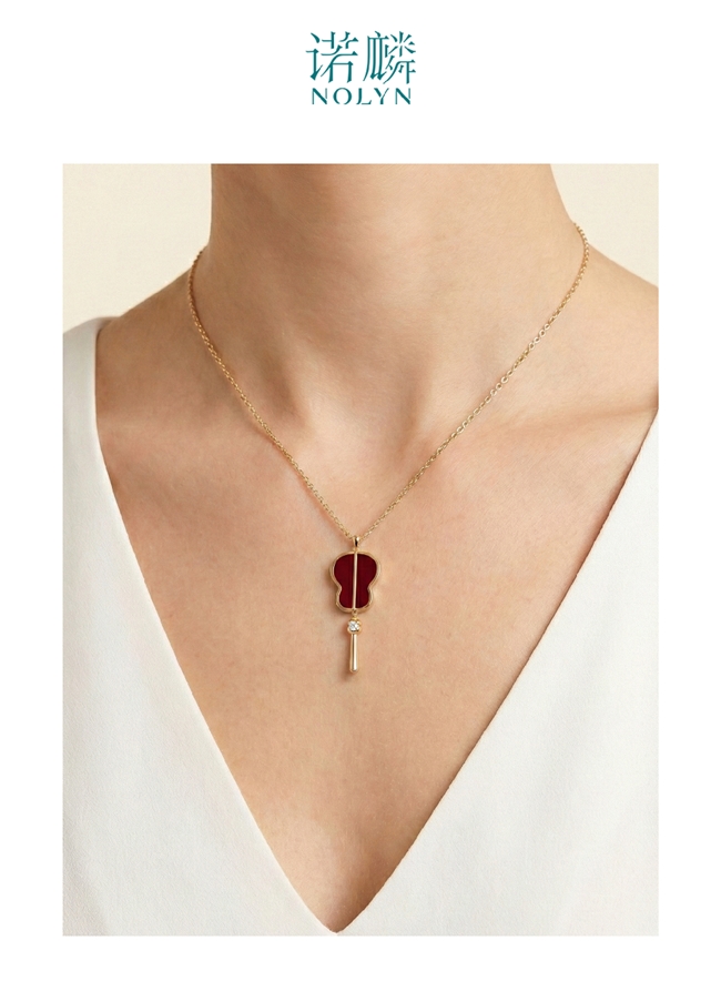 诺麟“绿天系列”红玛瑙项链。灵感源自苏州园林中承载风雨的芭蕉叶,寓意温柔坚韧。在年会庆典场景,搭配一袭黑色丝绒礼服,红玛瑙的温润色泽与金属光泽交相辉映,成为聚光灯下的视觉焦点,气场全开。转换至日常通勤,搭配简约的米色针织衫或白衬衫,它则化身为颈间一抹恰到好处的温柔点缀,于理性中注入女性柔美。