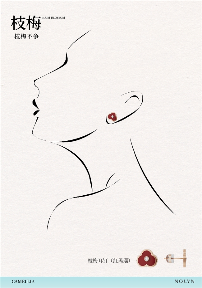 第二步:增加层次。在核心单品基础上,加入一件同系列或设计语言相近的饰品。例如,在窗花项链上,叠戴一条更纤细的锁骨链;或在佩戴枝梅耳钉时,搭配一枚同系列的 【枝梅】 项链。金属色调的统一(玫瑰金)确保了叠戴的和谐感。