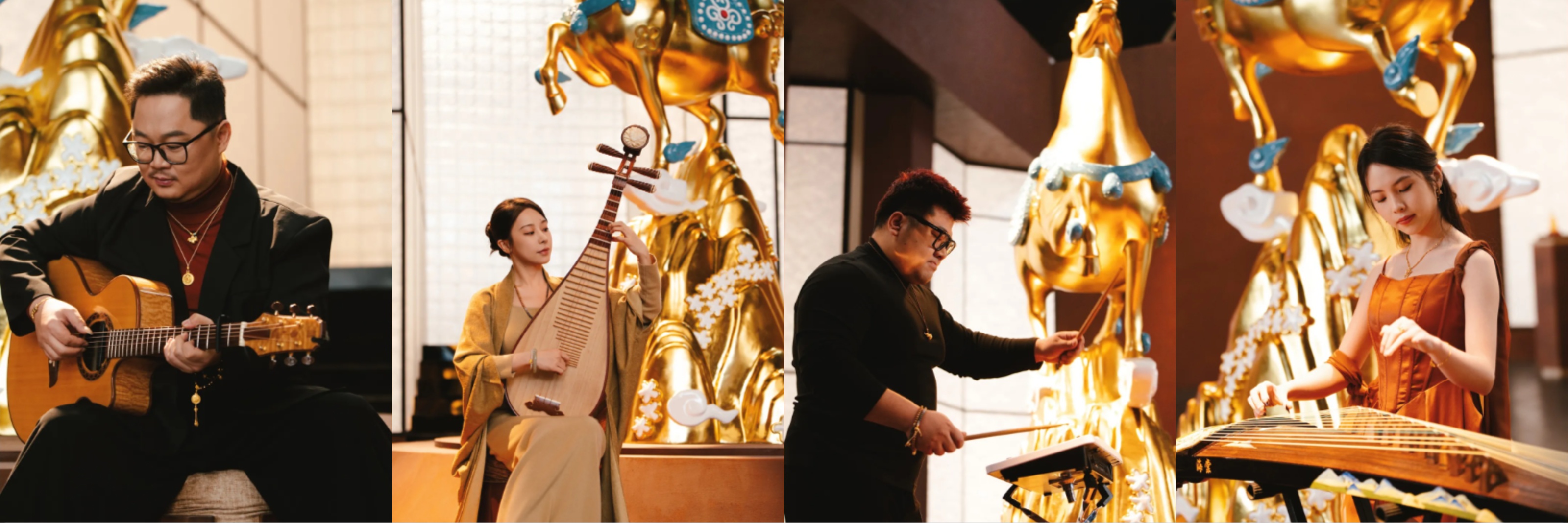 在产品设计上,生肖形象实现东西方美学交融,东方唐马的矫健神韵与西方小飞马的灵动姿态相映成趣,勾勒出跨越文化的生肖魅力;珐琅工艺则玩转出创新巧思,国家宝藏IP的霁红珐琅承载东方宫廷的华贵气韵,莫奈IP的紫色珐琅融入印象派的浪漫笔触,荧光珐琅工艺再升级,让传统技法迸发新潮视觉张力;串珠品类也完成风格碰撞,黄金文玩串珠的东方雅致与腕美转运珠的时尚创新相得益彰,精准触达不同审美偏好的消费群体。而直播大秀中特邀现场演出的氧音映社,以中西乐器的创意合奏打造听觉盛宴,丝竹雅韵与西洋音律交织共鸣,让“有点「东西」”的主题从视觉延伸至听觉维度。